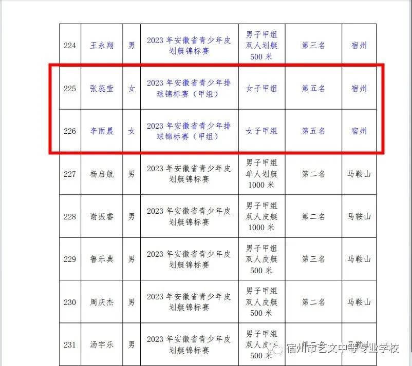 我校張蕊瑩、李雨晨兩位同學(xué)在2023安徽省青少年排球錦標(biāo)賽(甲組)中榮獲第五名并被認(rèn)定為國家一級運(yùn)動員。