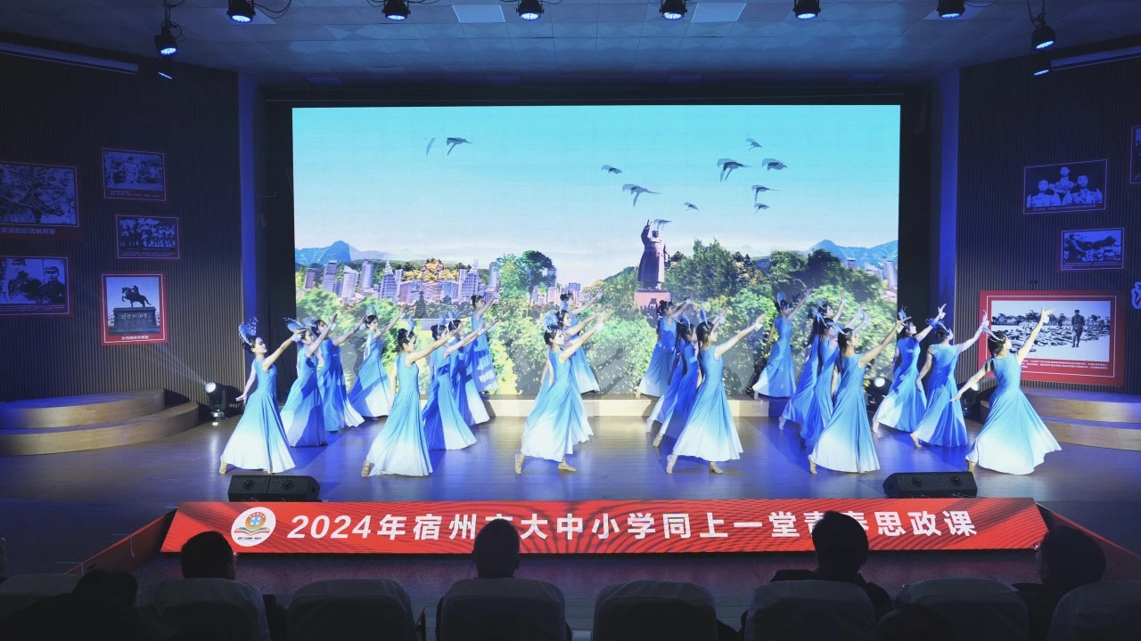 近日,宿州市大中小學(xué)同上一堂青春思政課活動(dòng)在宿州學(xué)院大學(xué)生活動(dòng)中心隆重舉行。我校積極參與其中,選送的歌伴舞節(jié)目《紅色家書》和《讓我們一起遠(yuǎn)航》精彩亮相。