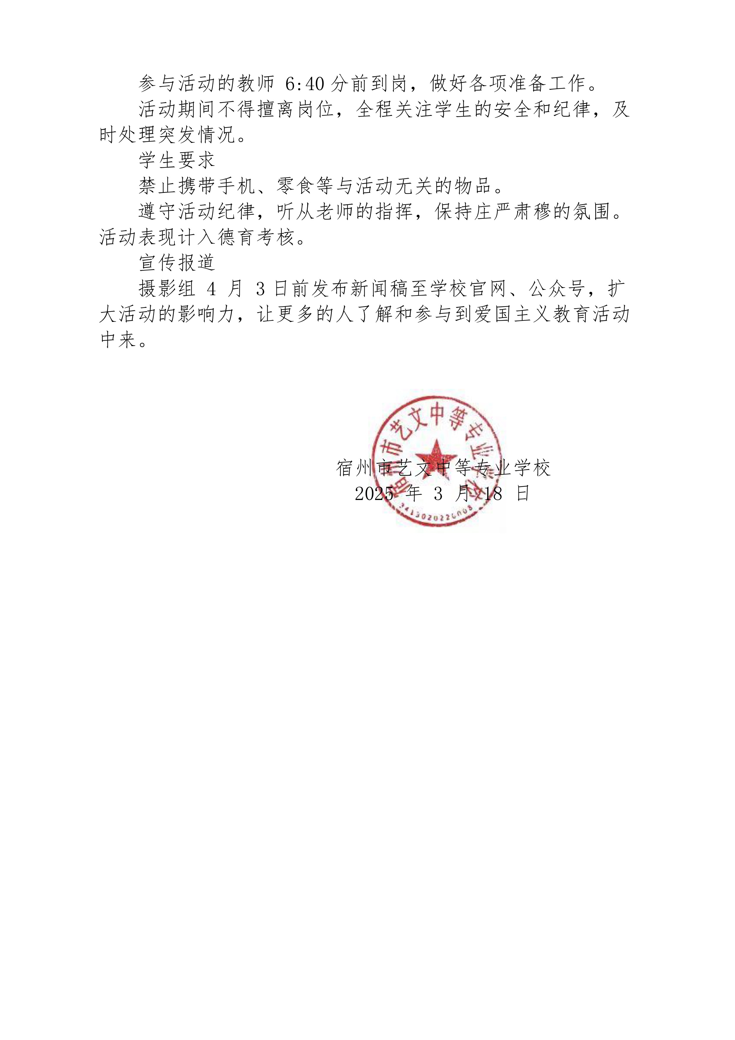 宿州市藝文中等專業(yè)學校開展“祭奠英雄先烈、傳承紅色基因” 愛國主義教育活動實施方案