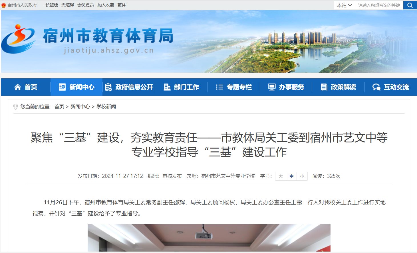 【市教體局】聚焦“三基”建設(shè),夯實(shí)教育責(zé)任——市教體局關(guān)工委到宿州市藝文中等專業(yè)學(xué)校指導(dǎo)“三基”建設(shè)