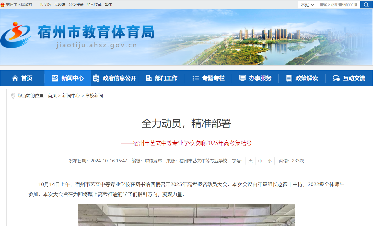 【市教體局】全力動(dòng)員,精準(zhǔn)部署 ——宿州市藝文中等專業(yè)學(xué)校吹響2025年高考集結(jié)號(hào)