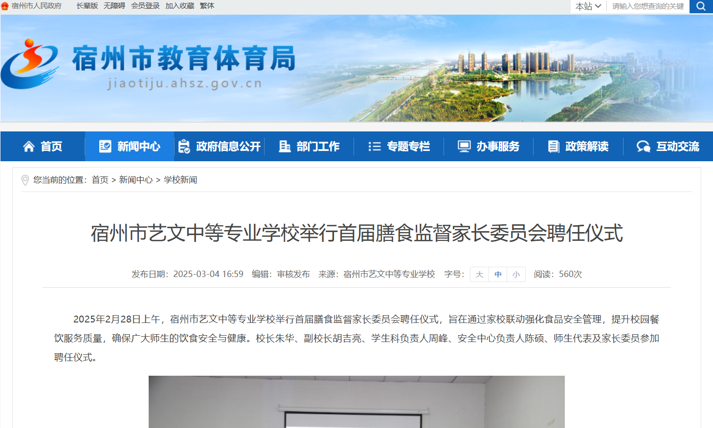 【市教體局】宿州市藝文中等專業(yè)學(xué)校舉行首屆膳食監(jiān)督家長委員會(huì)聘任儀式