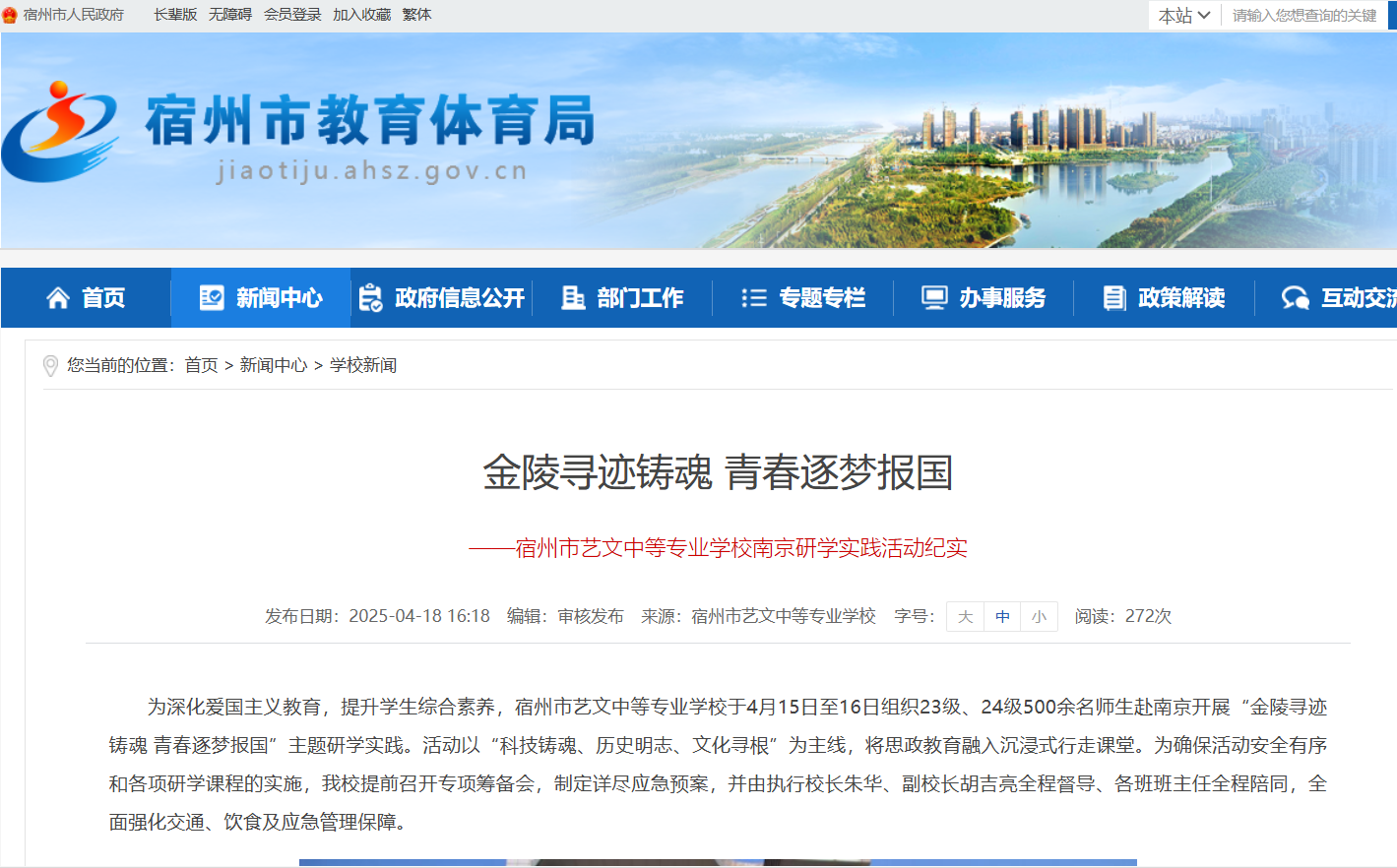 【市教體局】金陵尋跡鑄魂 青春逐夢報(bào)國——宿州市藝文中等專業(yè)學(xué)校南京研學(xué)實(shí)踐活動紀(jì)實(shí)