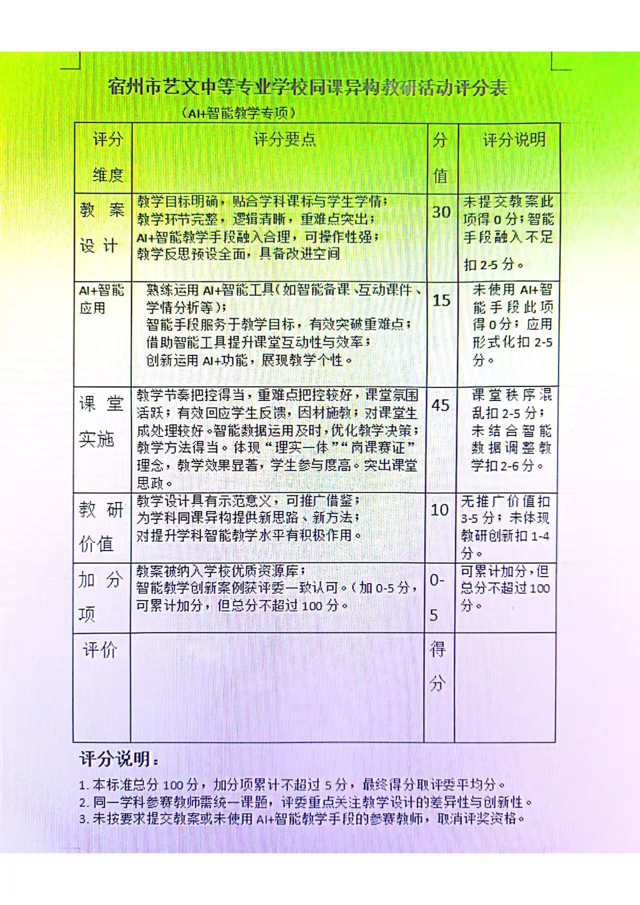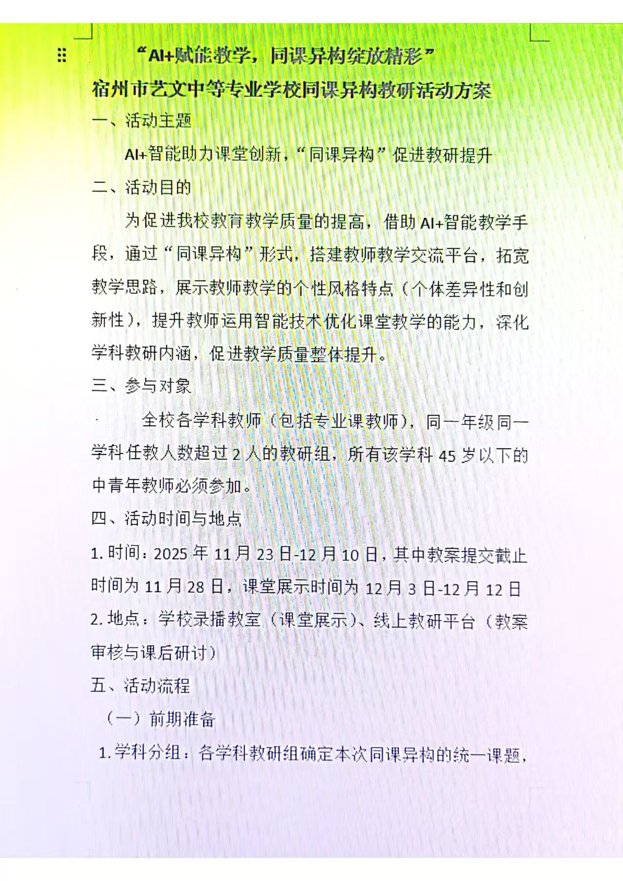 “AI+賦能教學(xué),同課異構(gòu)綻放精彩”宿州市藝文中等專業(yè)學(xué)校同課異構(gòu)教研活動(dòng)方案