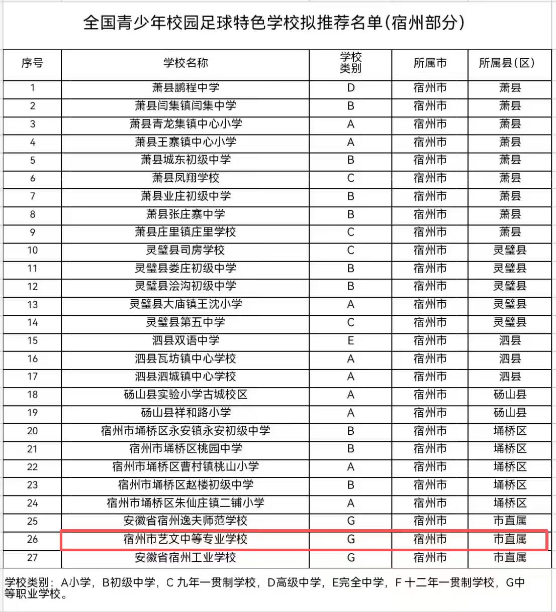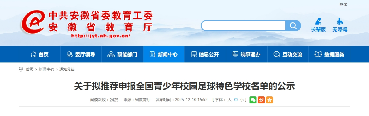 12月17日,2025年全國青少年校園足球特色學(xué)校擬推薦名單公示結(jié)束,宿州市藝文中等專業(yè)學(xué)校成功入選,成為宿州市27所獲薦學(xué)校之一。